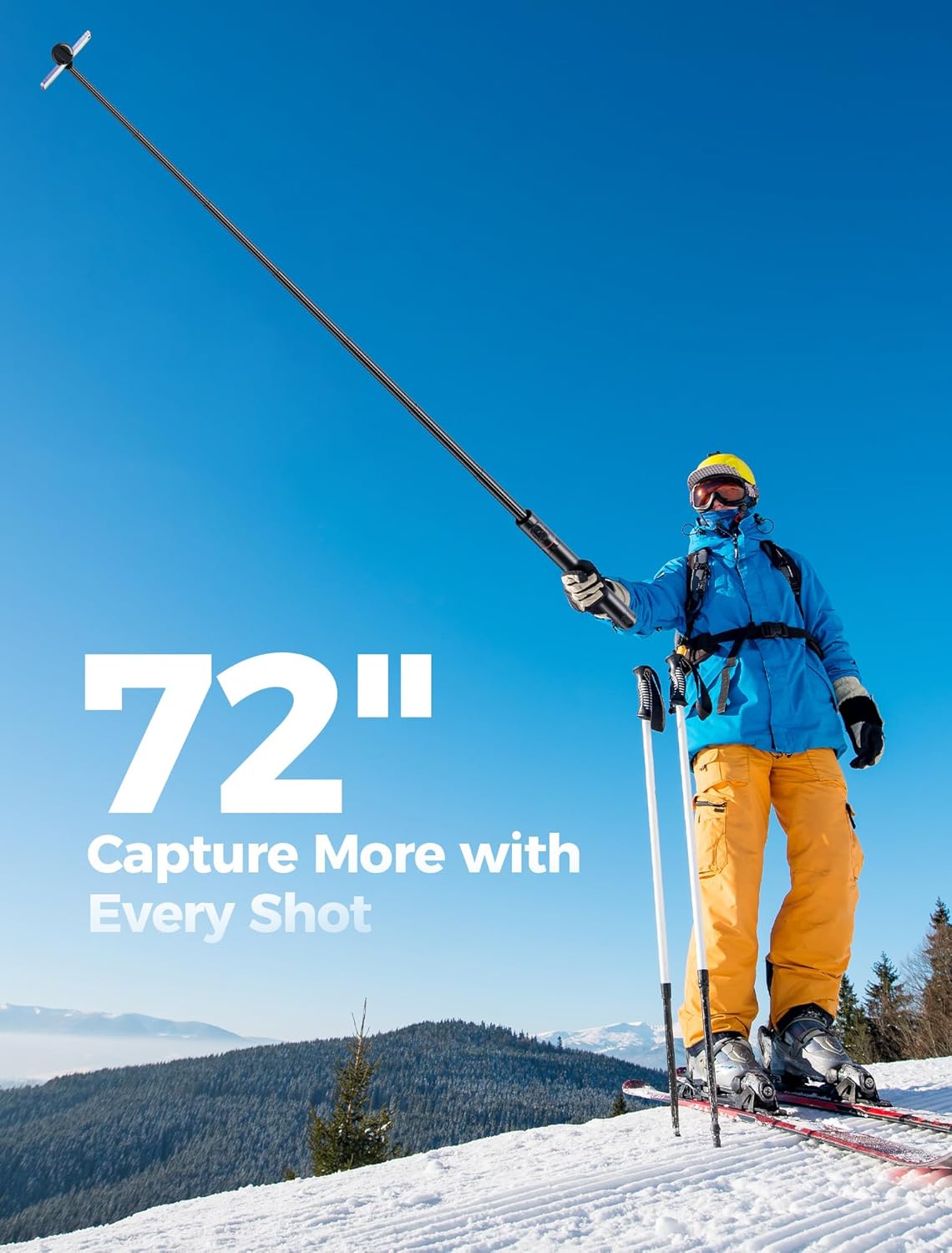 The gliship 72″” Phone Tripod Selfie Stick is the ultimate all-in-one solution for photography, video recording, and content creation. Combining the functionality of a selfie stick and a phone tripod stand, it offers unmatched versatility for iPhone and Android users. With an adjustable 14.3-72 inch telescopic pole made of durable aluminum alloy, you can capture everything from close-up portraits to stunning overhead and wide-angle shots.