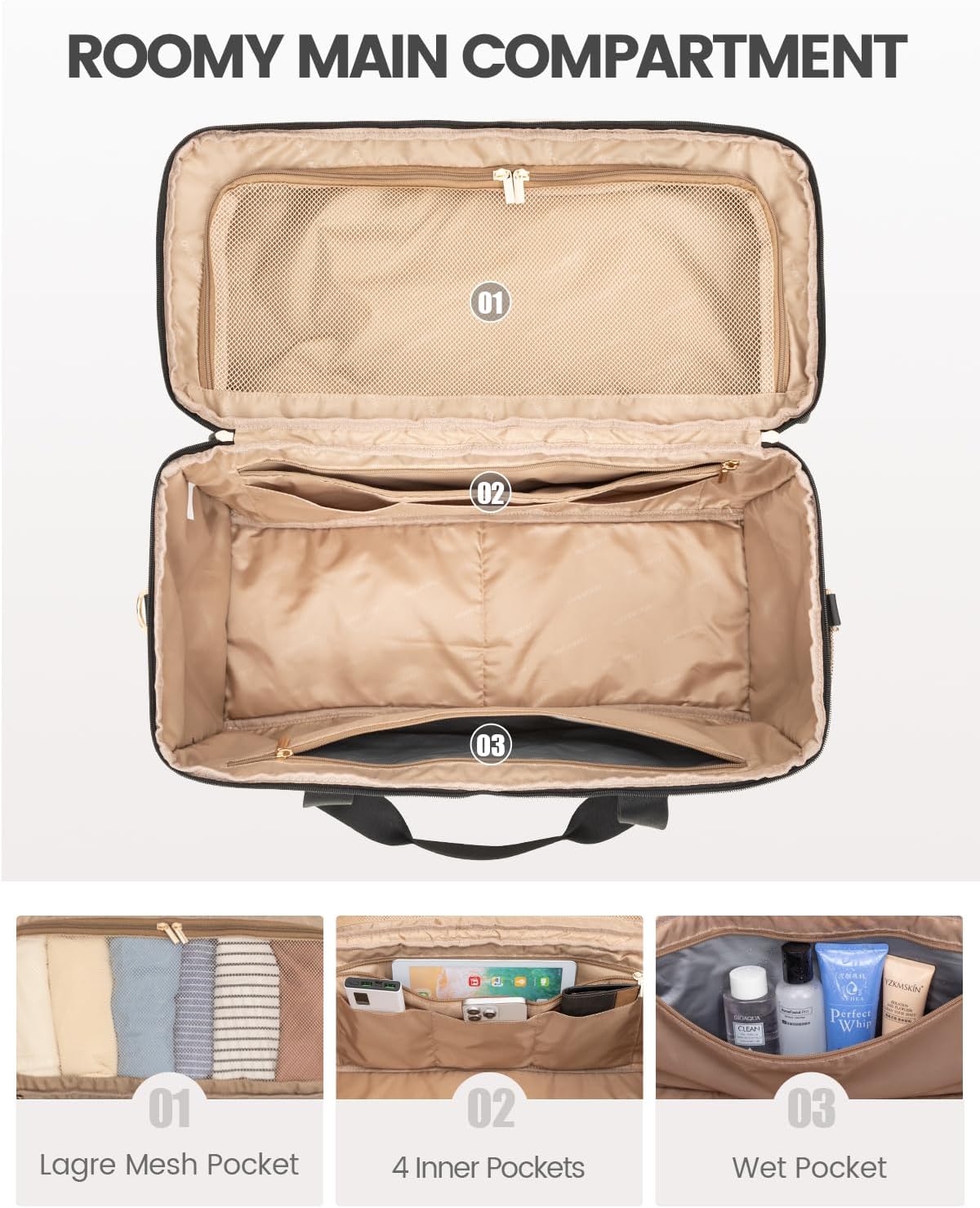 Customers find the duffel bag spacious and functional with nice compartments. They appreciate its attractive style, quality construction, and ease of transport. Many find it convenient for short trips and easy to pack and carry. However, opinions differ on the zipper quality and value for money.