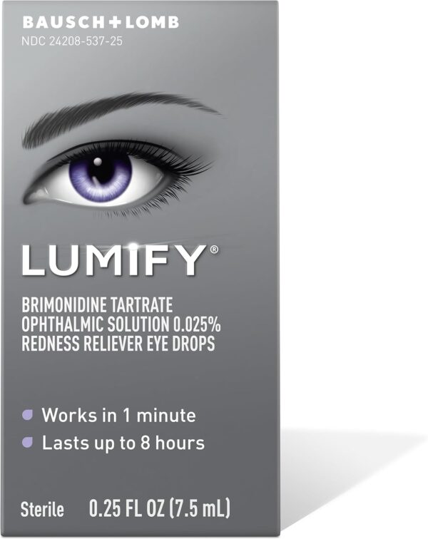 Eye Drops for Red Eyes: LUMIFY significantly reduces redness to help reveal your eyes’ natural radiance. From the eye care experts at Bausch and Lomb, LUMIFY works in 1 minute and lasts up to 8 hours