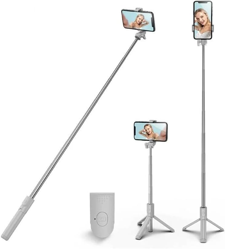 ADJUSTABLE ANGLE & FLEXIBLE: The selfie stick allows positioning your phone at just the right angle whether using it as a desktop stand or mounting it on the tripod stand for stable shots.