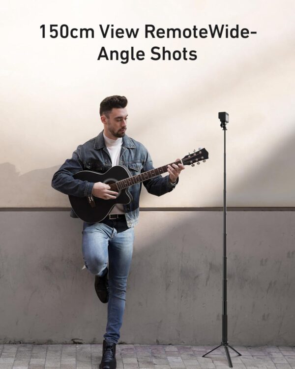 The pole has 3 extension lengths to choose from, extends from 9.33″ to 35.2″/47.83″/60.04″ (23.7cm-89.4/121.5/152.5cm), making it ideal for vlogging, hiking, or group shots.